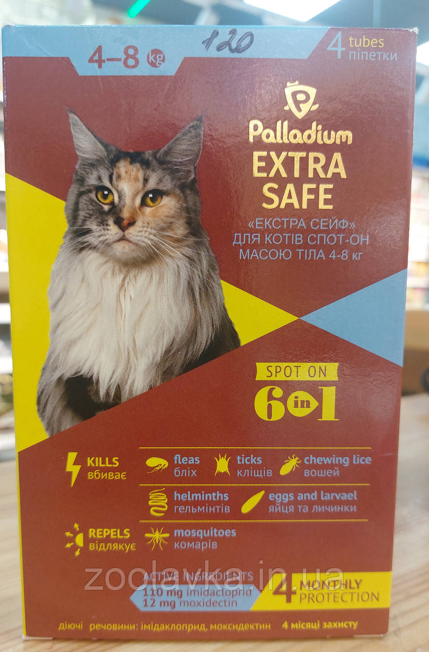 Краплі від бліх, кліщів і гельмінтів для котів 4-8 кг Palladium ( Палладіум) Extra Safe,1шт